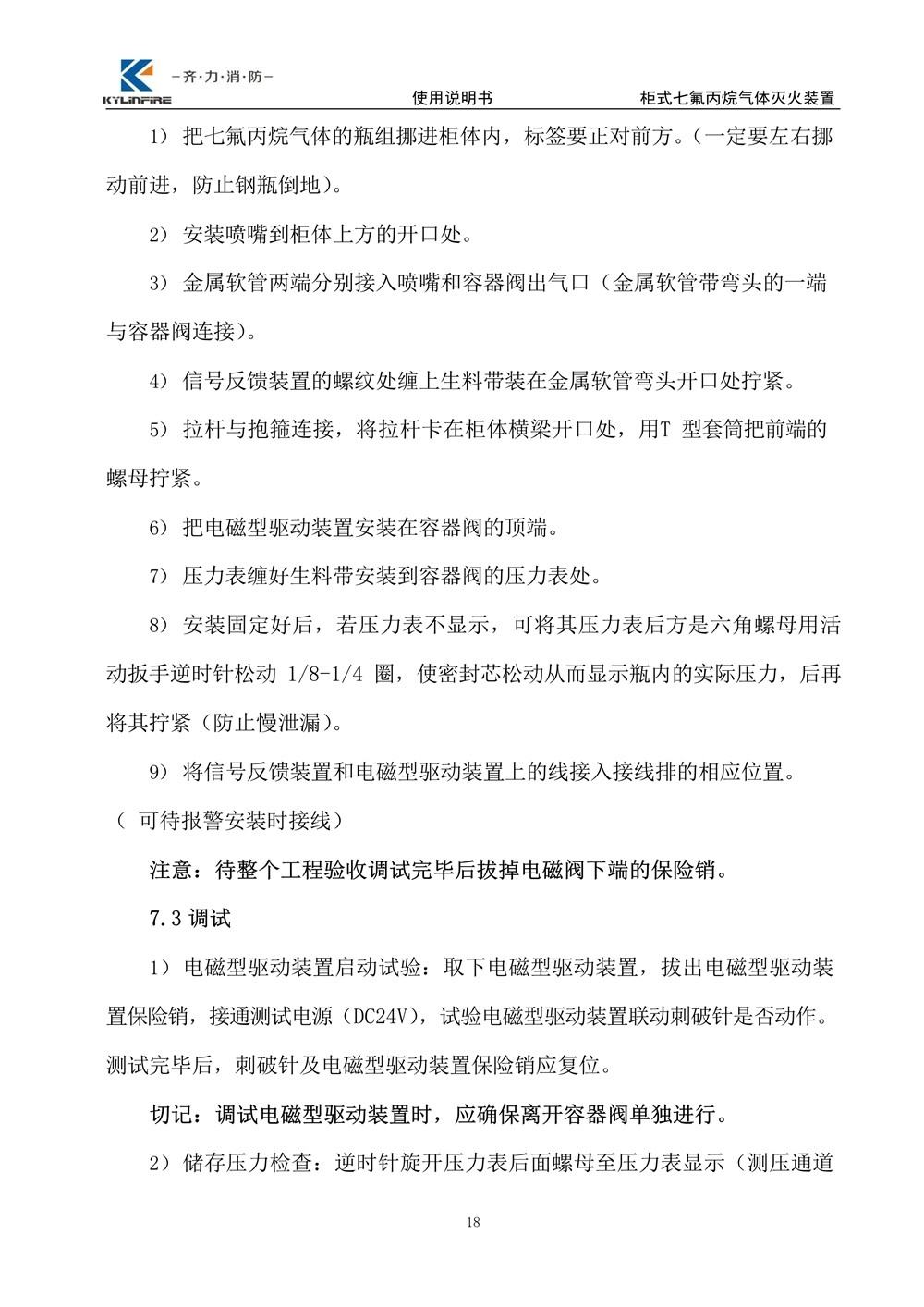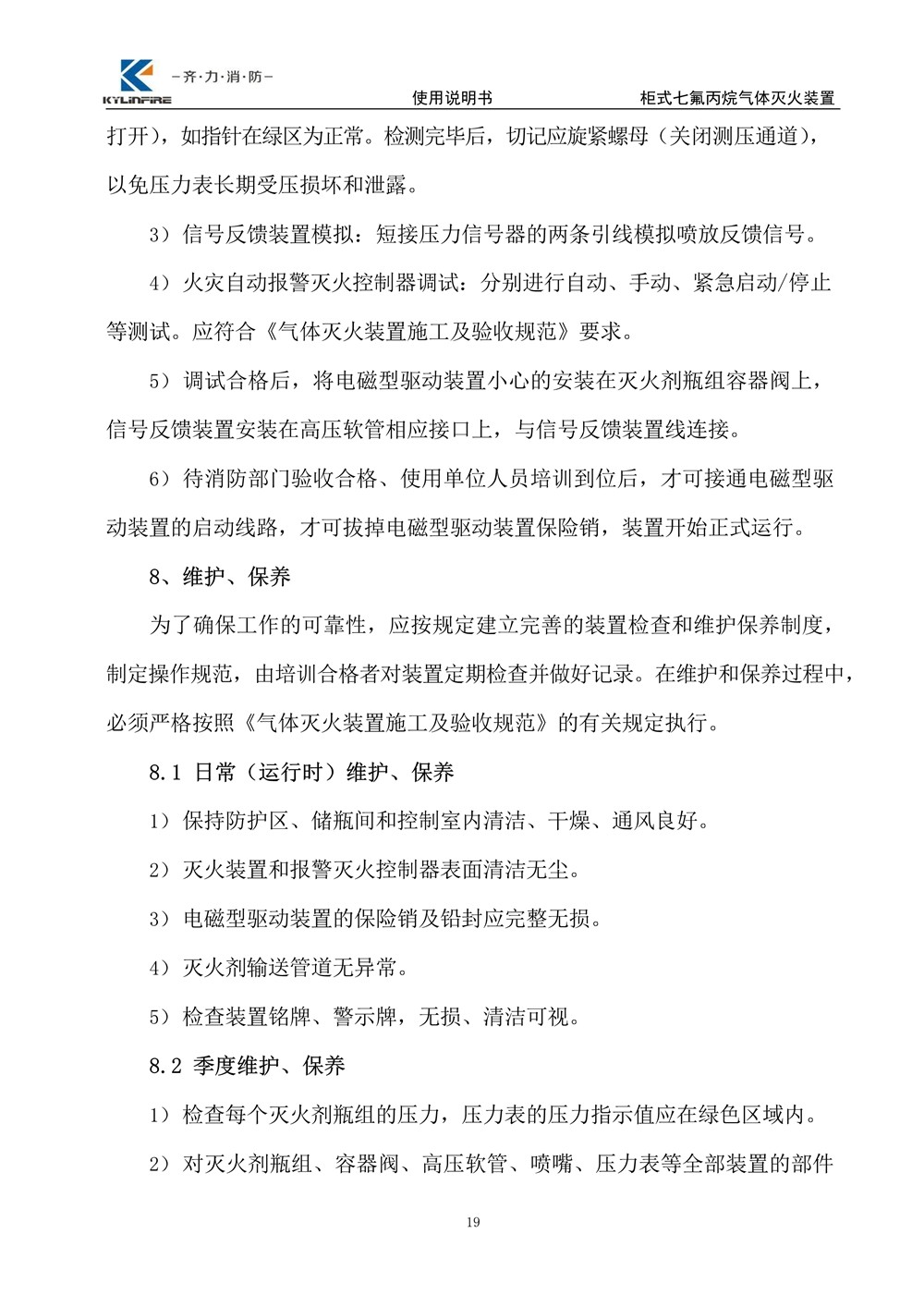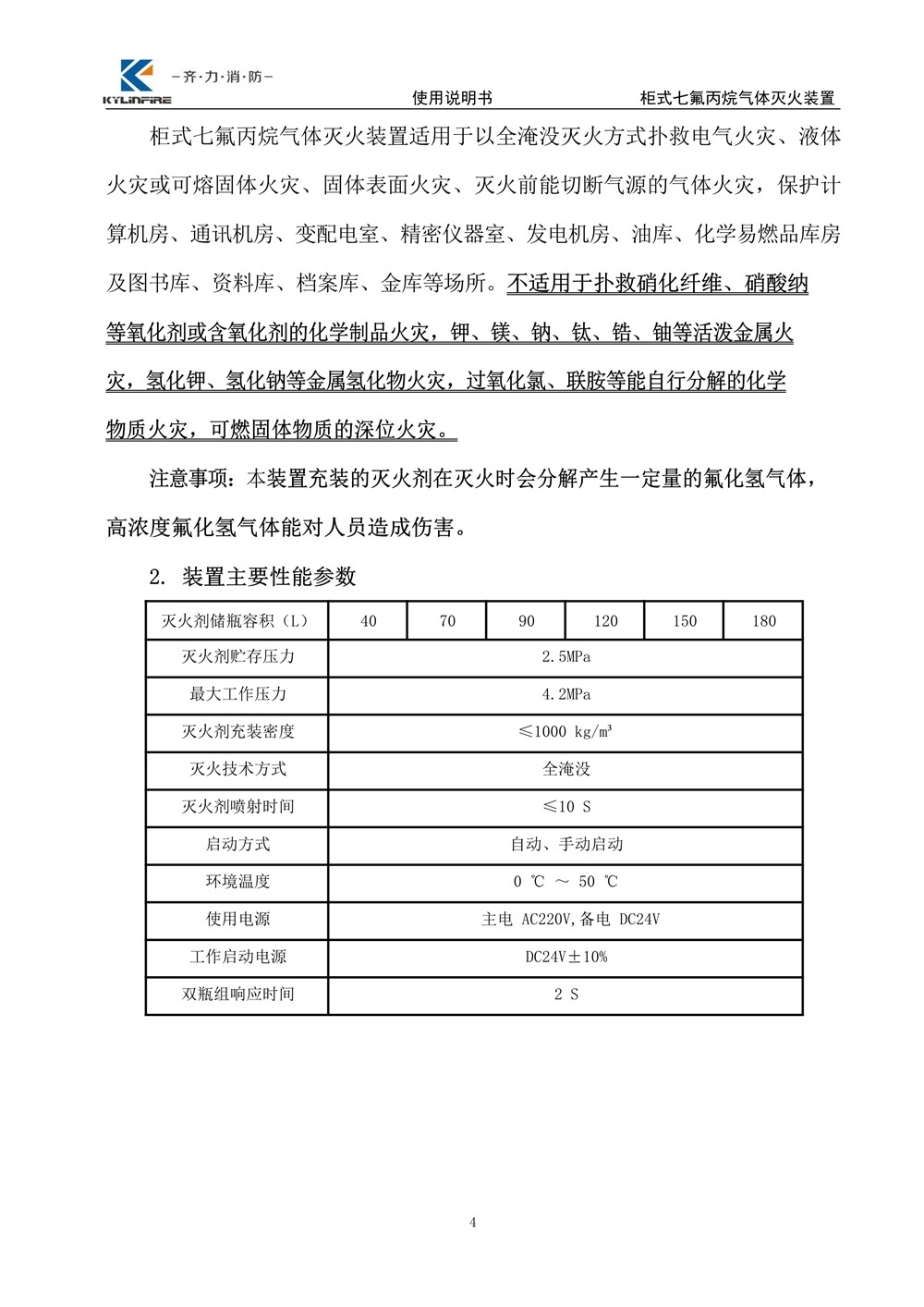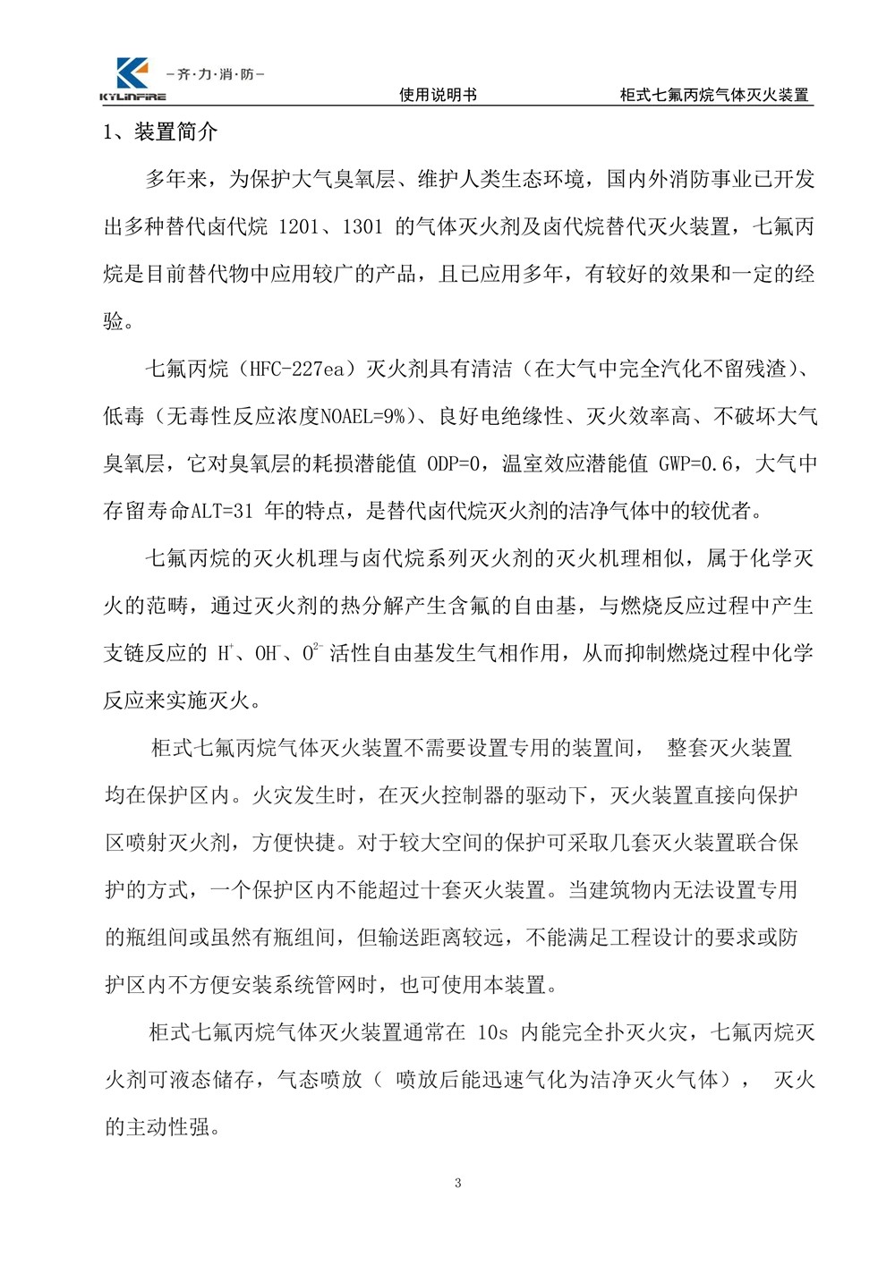 七氟丙烷滅火設備使用說明書