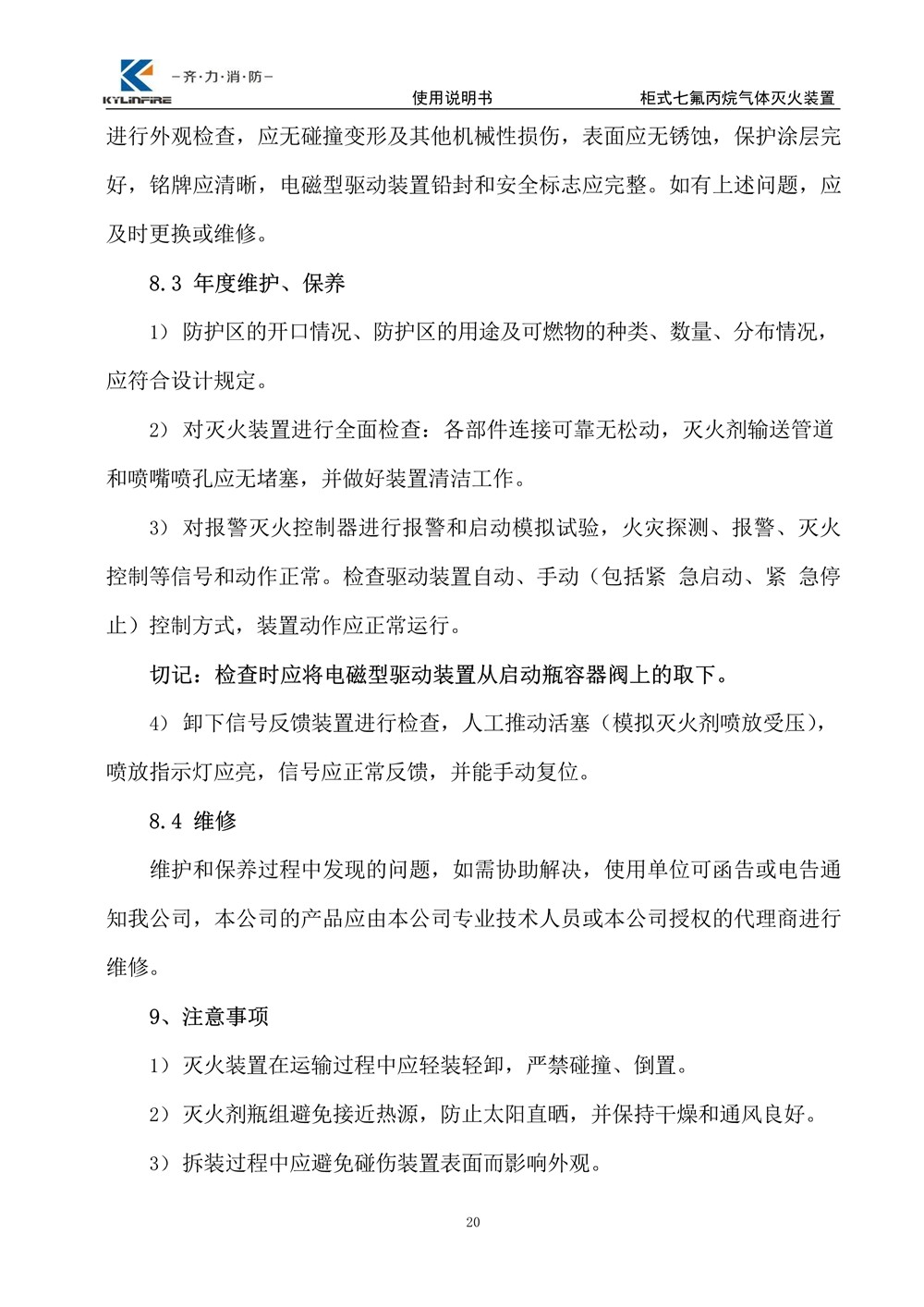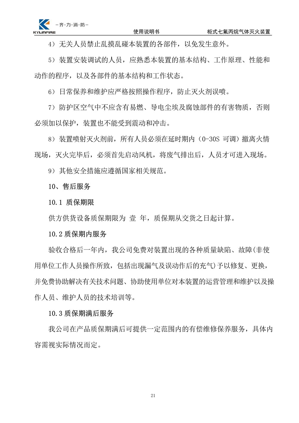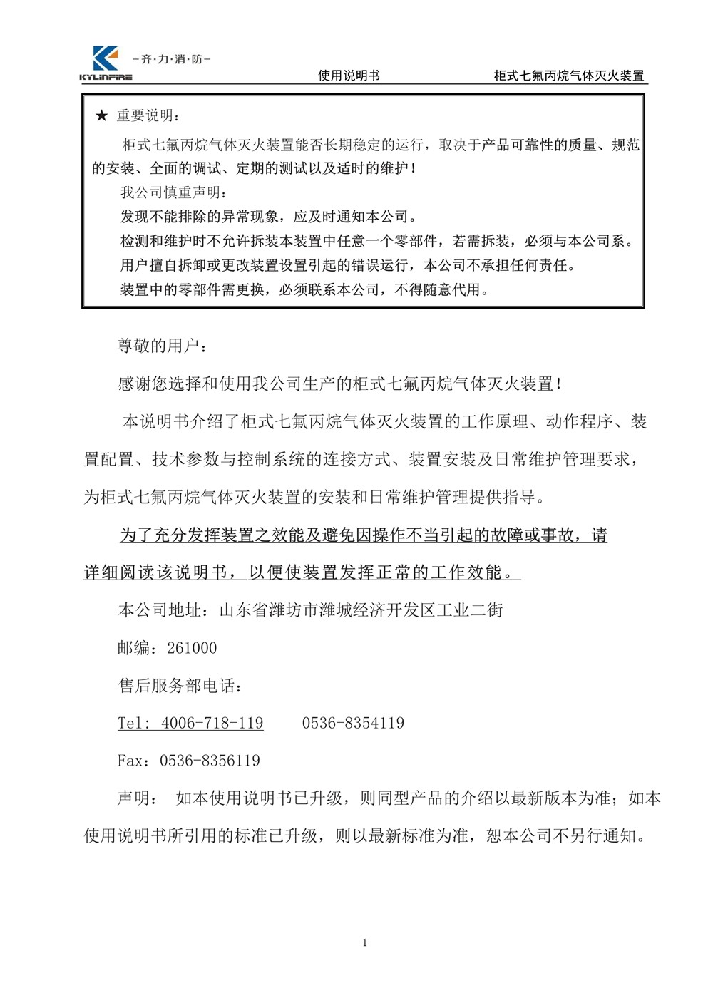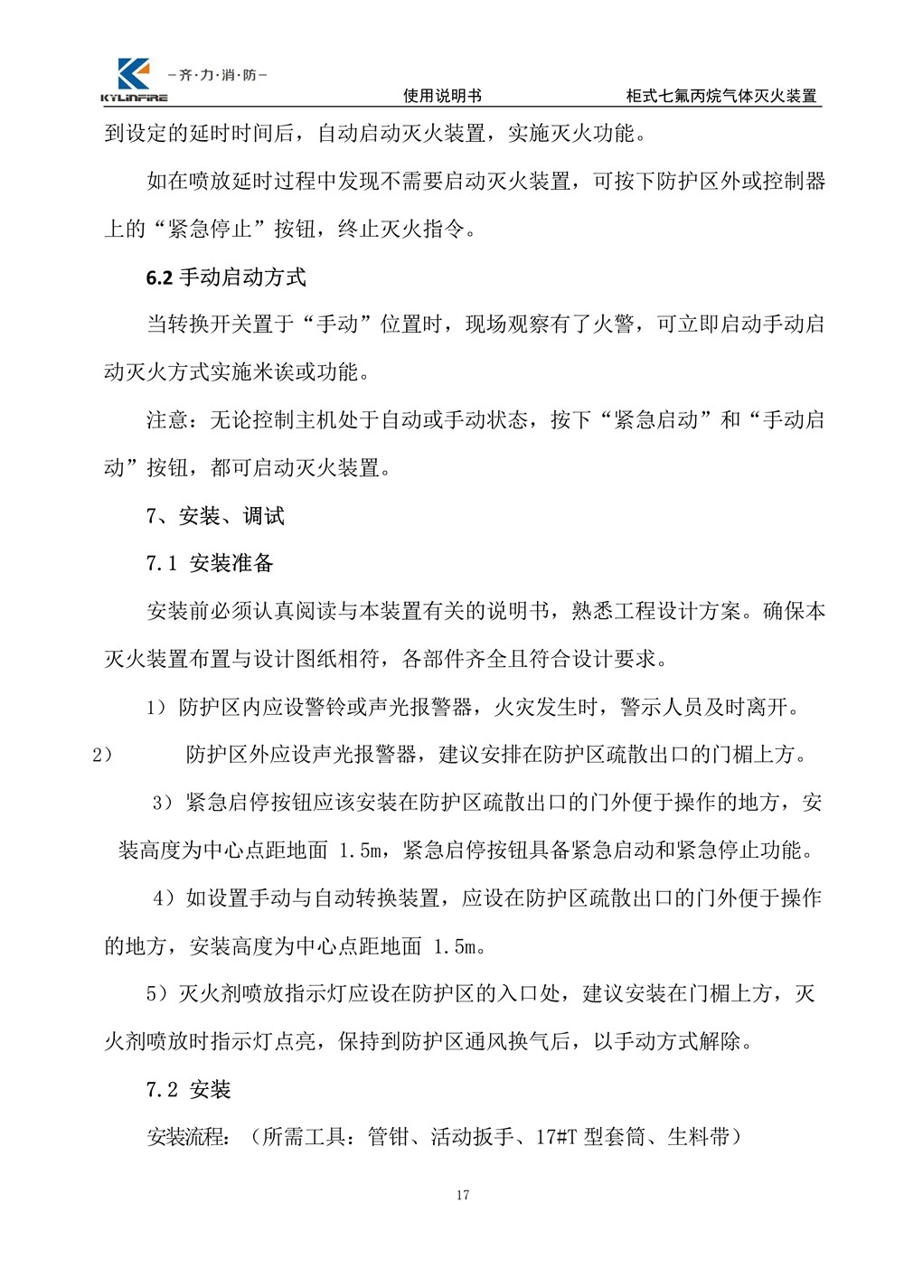 七氟丙烷滅火設備使用說明書